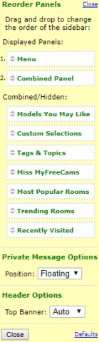 Okay, so this might seem like a less impressive feature to some, but I really appreciate it. All the panels that you see to the right of the MFC homepage are completely customizable. You can arrange them in any order you like, or hide them from view. There are even a few private message options to play with here.