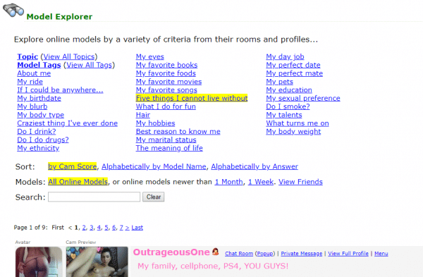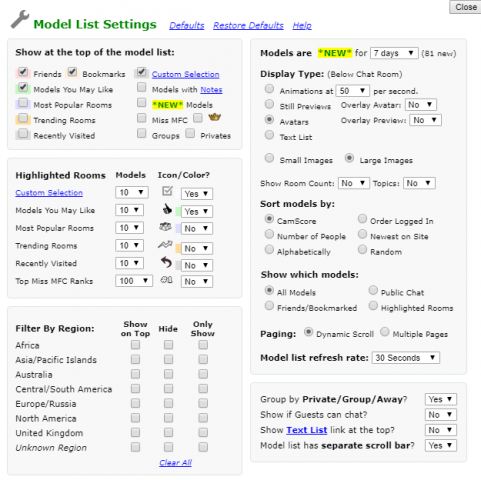 Finally, you can customize how you want to have the list of cam girls displayed. This is one of the most in-depth tools I’ve ever seen. Just take a look at the screenshot above. You can customize exactly who you want to see based on various locations and the sort models by tons of different options.