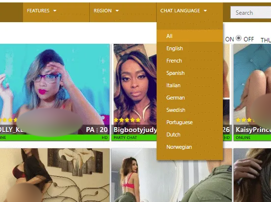 What I think is a much more foolproof method is to narrow your search by using other features on the site. RabbitsCams has a drop-down menu where you can search by region. But it isn’t precise enough to find German models since you can only get as close as Western Europe. A much better tool to use is the Chat Language drop-down, which is not the same as changing the language on the site. All you have to do is select German and, voila, German-speaking cam performers! Plus, often the model’s profile contains information regarding the languages she speaks. Remember, the German abbreviation is DE, for Deutsch.
